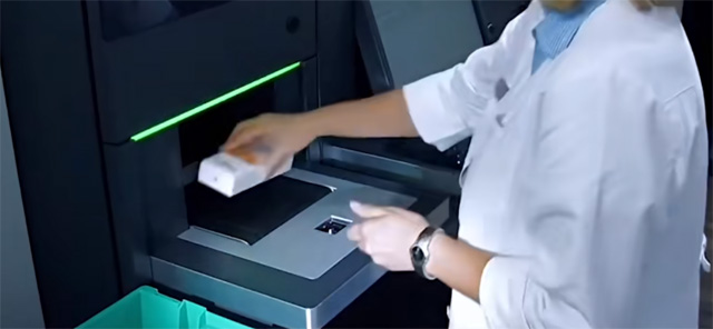 發(fā)藥機最快可以8秒完成配藥。高峰時候可以2秒發(fā)出一盒藥。一張?zhí)幏揭?盒藥品計算只需要8-12秒就可以配齊。大大的提高了發(fā)藥效率。發(fā)藥機還有自動鎖定功能,還可自動識別過期的藥品。過期藥品將不予發(fā)放,當缺少部分藥品時候,后臺將藥品傳輸?shù)胶笈_藥劑師人工添加好后再傳輸?shù)角芭_。很多人講這個不就是一個機械臂嗎?可以進行掃描取貨。看視乎不難,其實還是有很高的技術含量的。