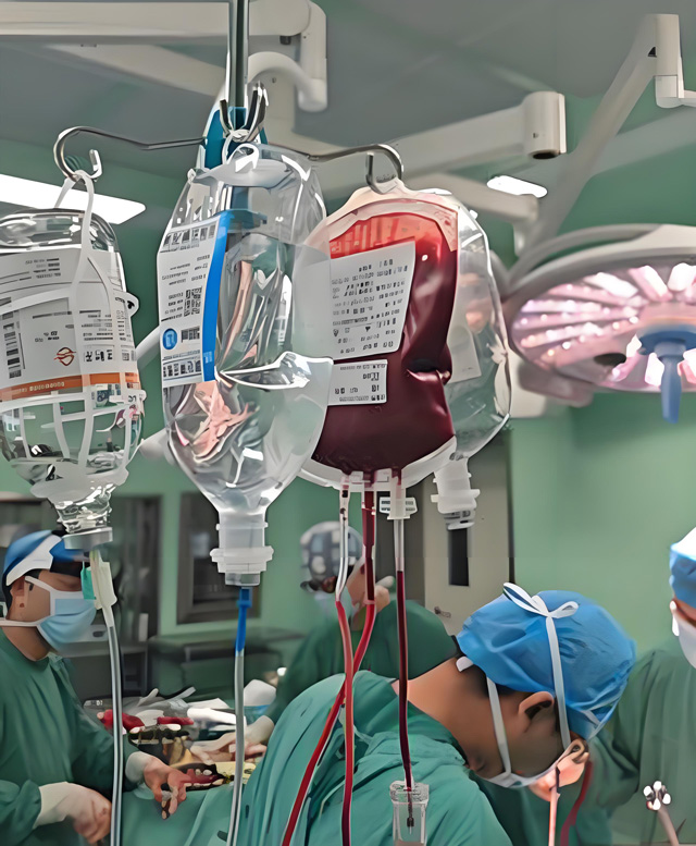 輸血方案采用血液打包輸注,需要6U紅細胞、4U血漿和1U單采血小板。混合組合成血液包手術室、產房或急診科輸血。臨床醫生要積極預防稀釋性凝血障礙。出現危及生命的產后出血狀況時,臨床搶救就需要大量的輸血挽救生命。因為創傷病人出血有預警方案,而產后出血復雜隨機性,很多突發意料之外因素。產后大出血是無法預測的,在搶救輸血的臨床實踐中,對于大出血的病人,輸血液態血漿比新鮮冰凍血漿效果更好。